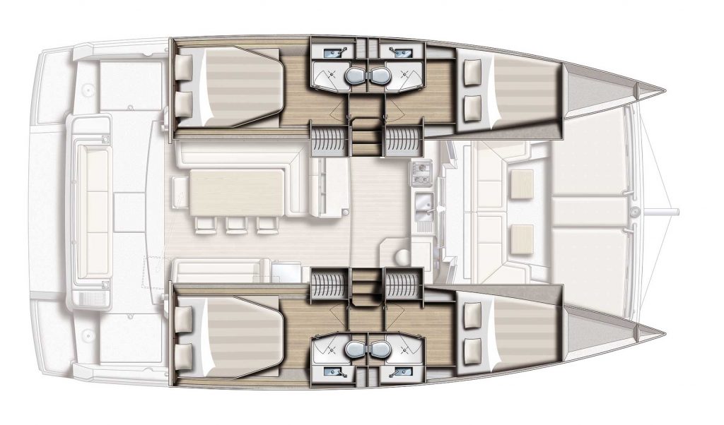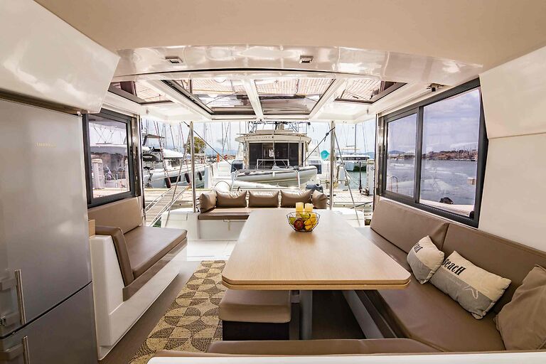 The Bali 4.1 catamaran is a modern, spacious catamaran ideal for up to 8 guests for bareboat charter with space for a skipper for those looking for a skippered yacht charter.
