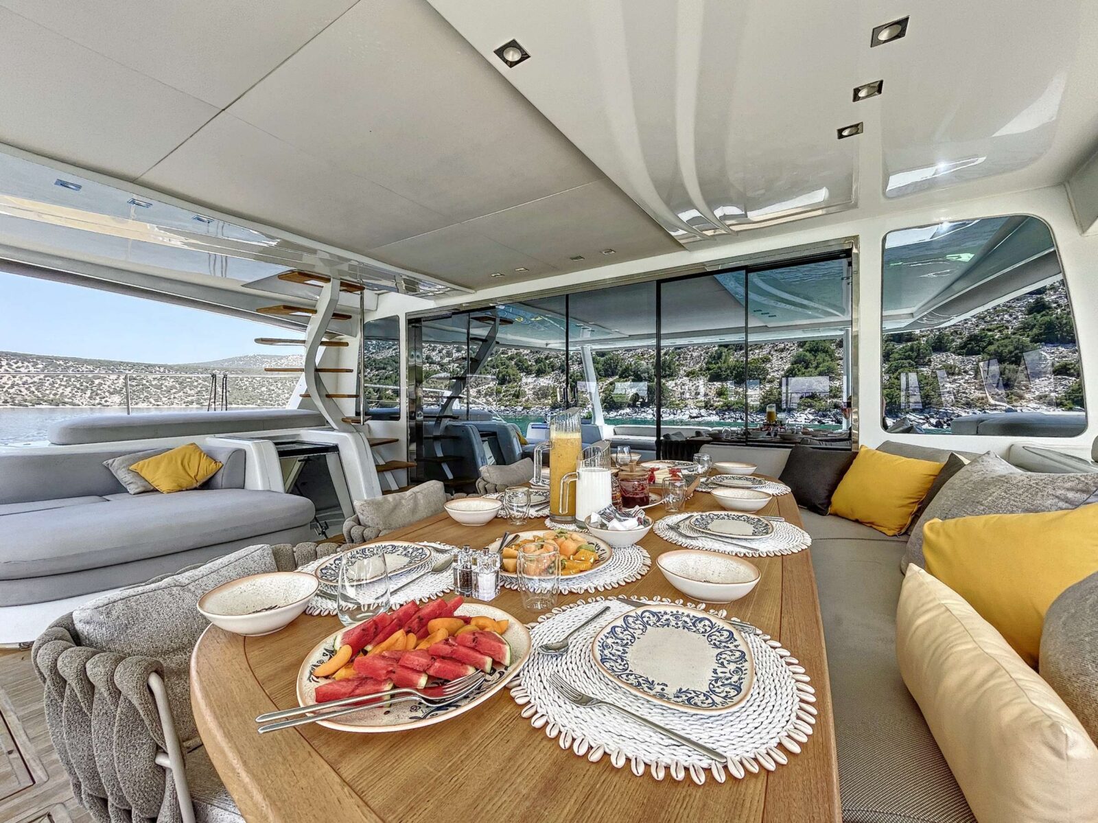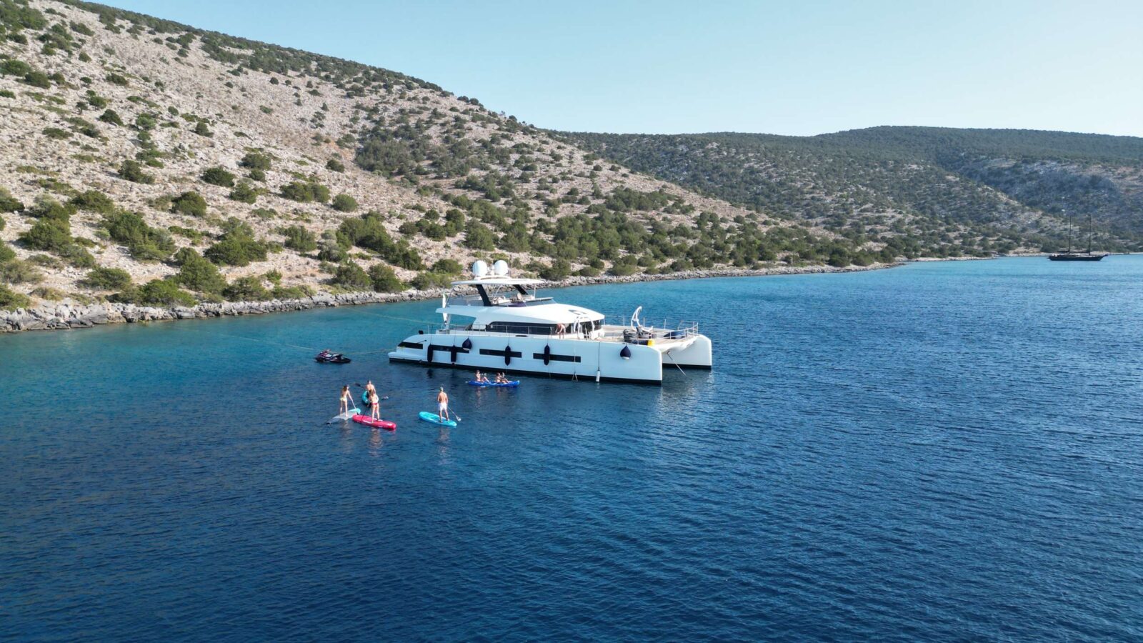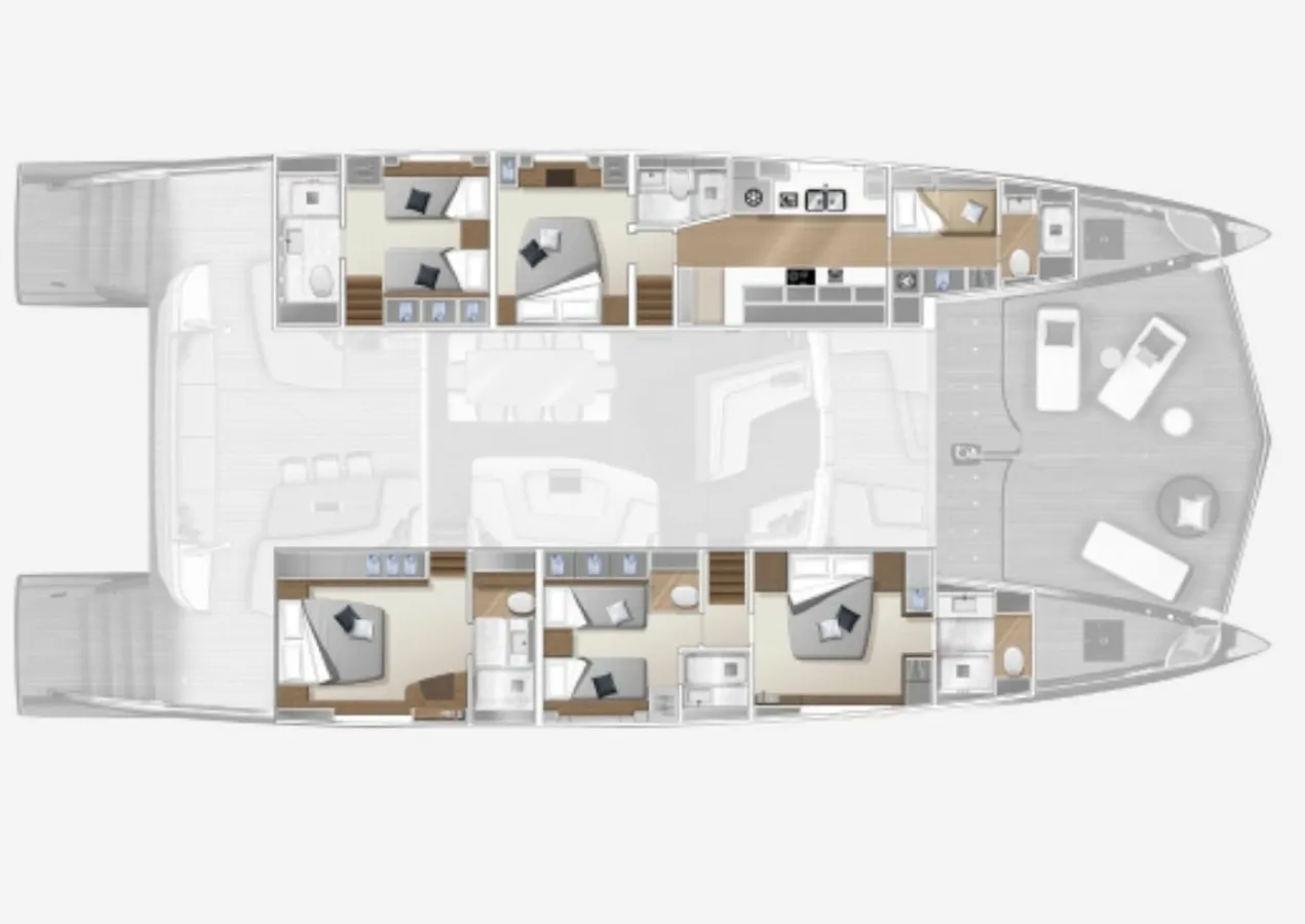 Yacht Model: Lagoon Seventy8 Power Year Built: 2019 Cabins: 3 double queen bed cabins and 2 twin cabins all with private facilities. Each cabin is equipped with TV, bathrobes, slippers, amenities (shampoo, conditioner, body wash, body lotion), hairdryers Berths: 10 WC/Showers: 5 Length Overall: 23.8m