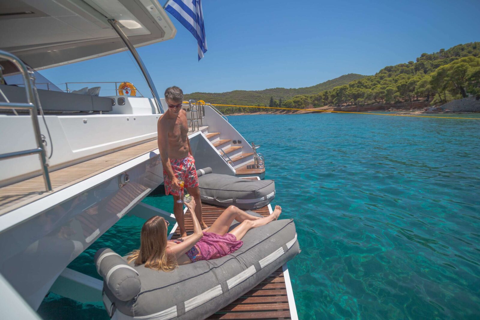 Larger, more luxurious yachts and catamarans with a captain plus 1-5 extra crew including a chef. Comfort and style, attentive service, amazing food and a different beautiful location each day.