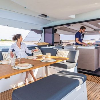 Embark on a journey of freedom and adventure with the latest model Fountaine Pajot Aura 51 catamaran. Sailing in the Aegean Sea, you’ll be surrounded by the magic of the Greek islands, exploring their turquoise waters and pristine beaches. This stunning new yacht is exclusively offered with skipper and hostess/cook.