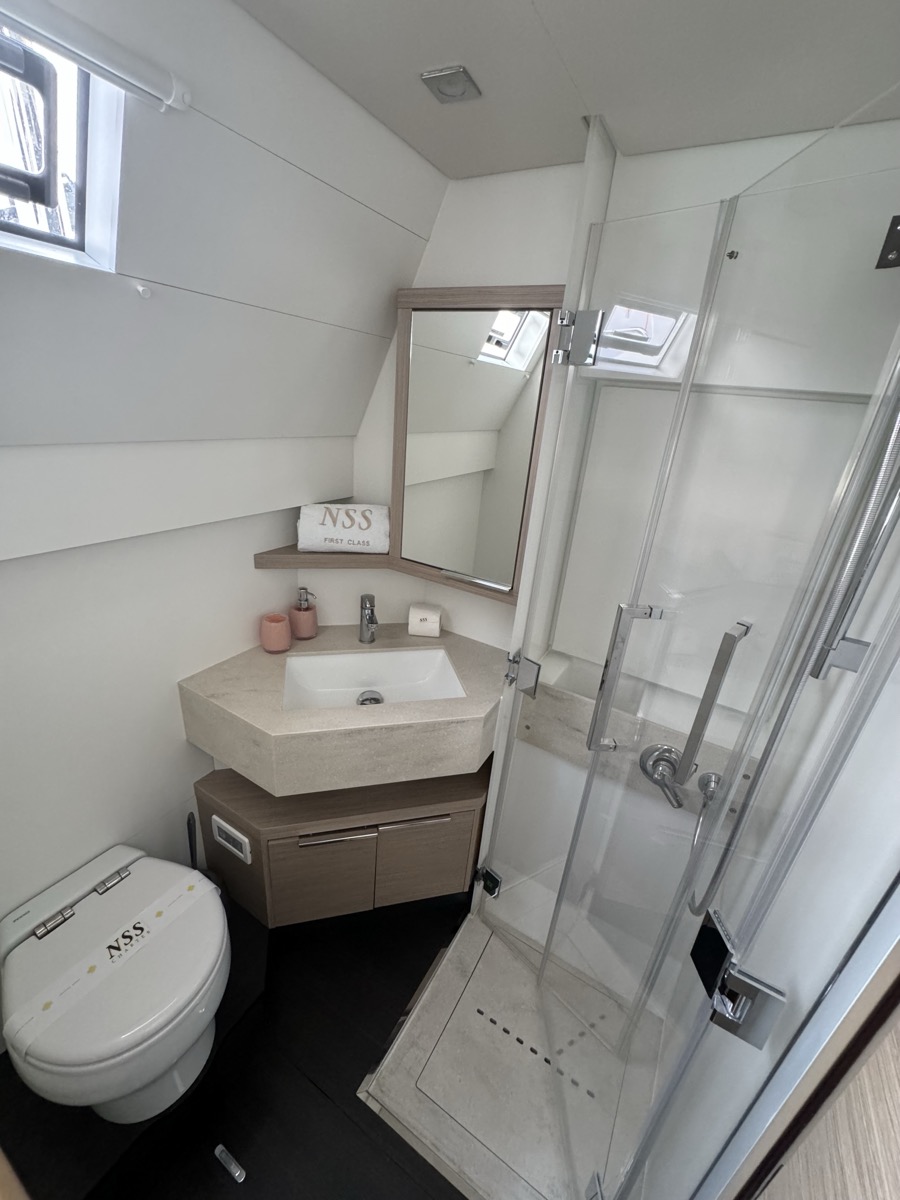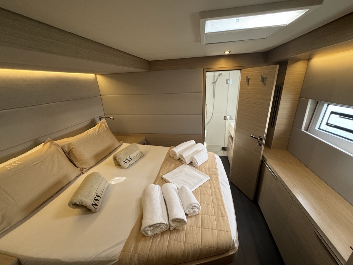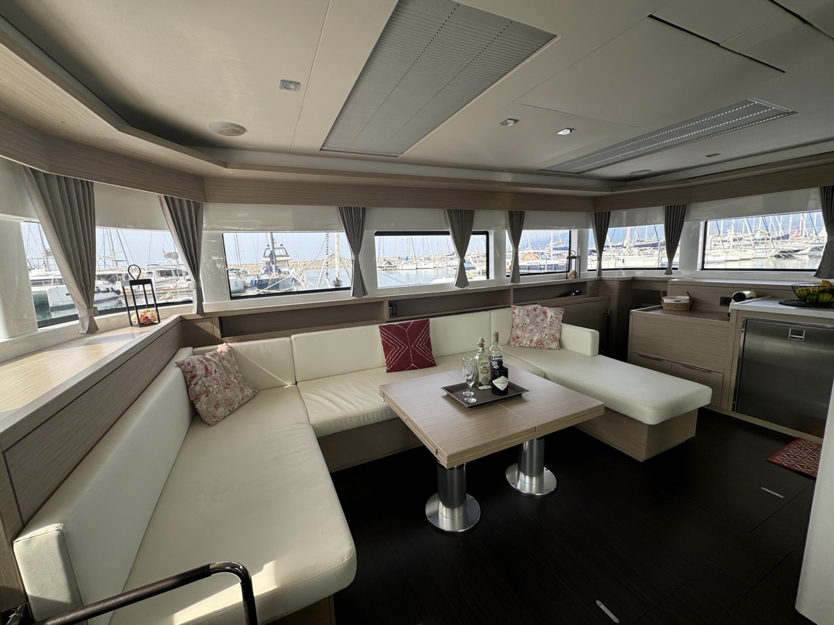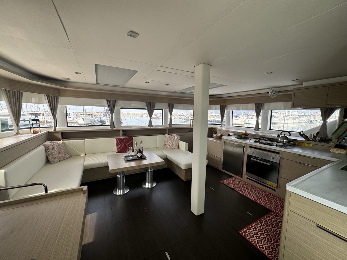 The Lagoon 55 offers spacious and modern interior, making it an ideal choice for exploring with family and friends. The vast interior spaces have been designed for you to escape and unwind with light and airy spaces featuring a fully equipped galley with plenty of seating space. The yacht is equipped with air conditioning, a water maker, ice-maker and hydraulic gangway.